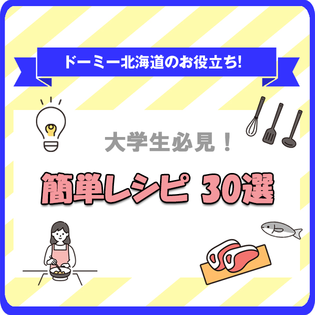 料理が苦手…時間がない…でもちゃんと食べたい!そんな大学生の強い味方が【学生会館ドーミー】です。「一人暮らしは不安だけど、寮なら安心」「料理はできないけど、ちゃんとしたご飯が食べたい」そんな方にぴったりな住まいです。ドーミーでは、毎日の食事が人との出会いの場でもあります。朝ごはんや夕ごはんの時間に自然と顔を合わせて、友達ができるのも魅力のひとつ。もちろん、ご飯をパスしたい日はスマホから簡単キャンセルOK!一人暮らしを始める大学生活は、自由と同時に“自分を整える力”も求められます。 食生活はその第一歩。無理なく続けられるレシピと、頼れる住まいがあれば、新生活はきっと楽しくなりますよ!「自分に合った暮らし方」を見つけて、最高の大学生活をスタートさせましょう!